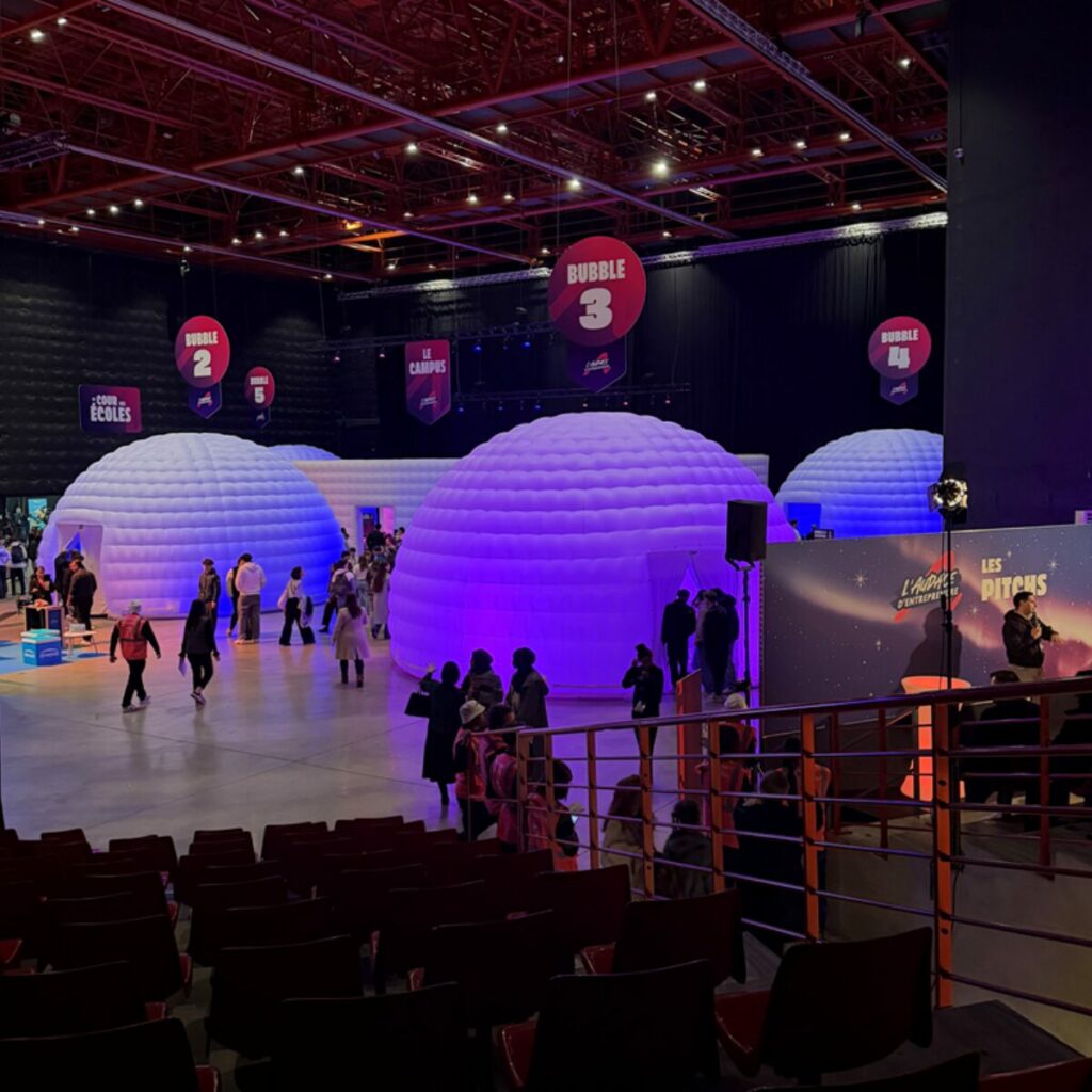 Le salon était organisé en plusieurs espaces thématiques sous forme de « bulles » permettant d’explorer :